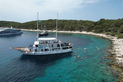 - Sociable lounge, restaurant & sun deck (plus hot tub on MV Paradis), and swim stops in hidden coves & bays